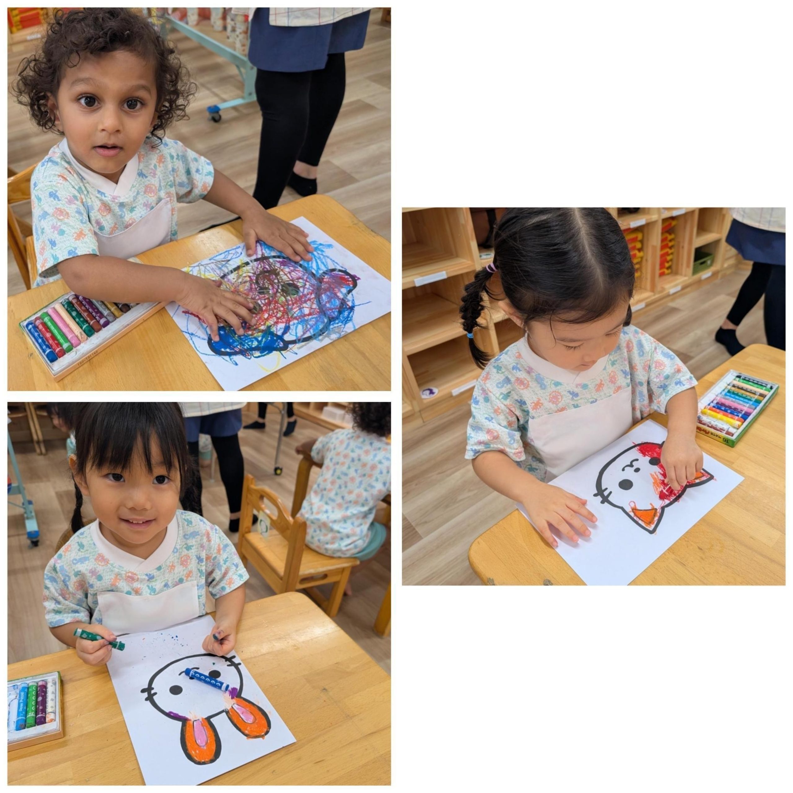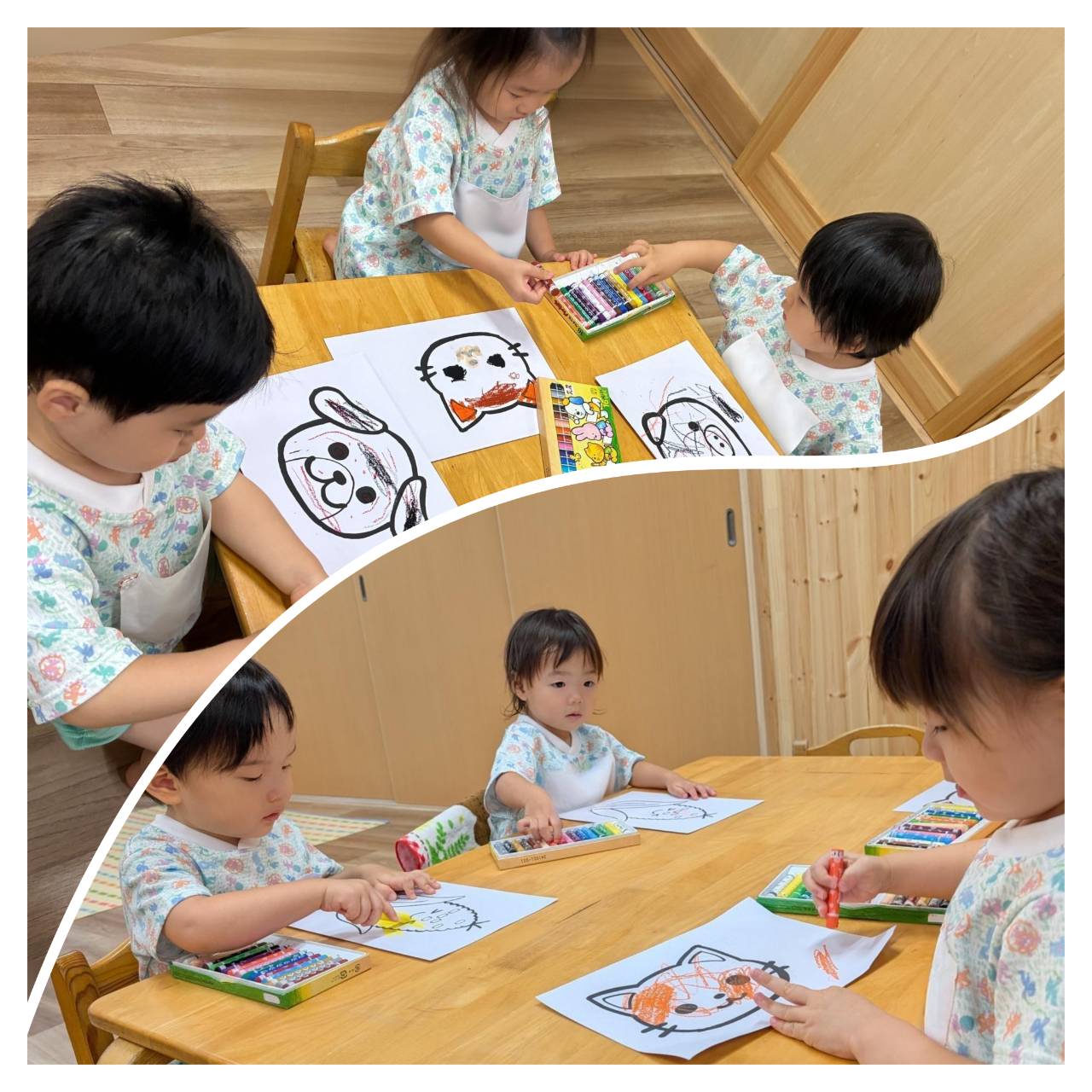 自分で選んだ役のお面に好きな色を塗ってくれました♡