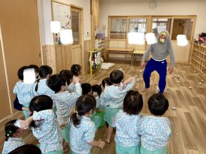 縄跳びを使って電車ごっこをしたり、年少年中さんと遊んだり、