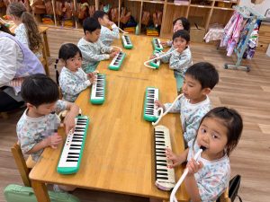 メロディオンの時間には、5本の指を使い先生のピアノに合わせて演奏することを楽しんでいます!3学期もよろしくお願いします⭐︎